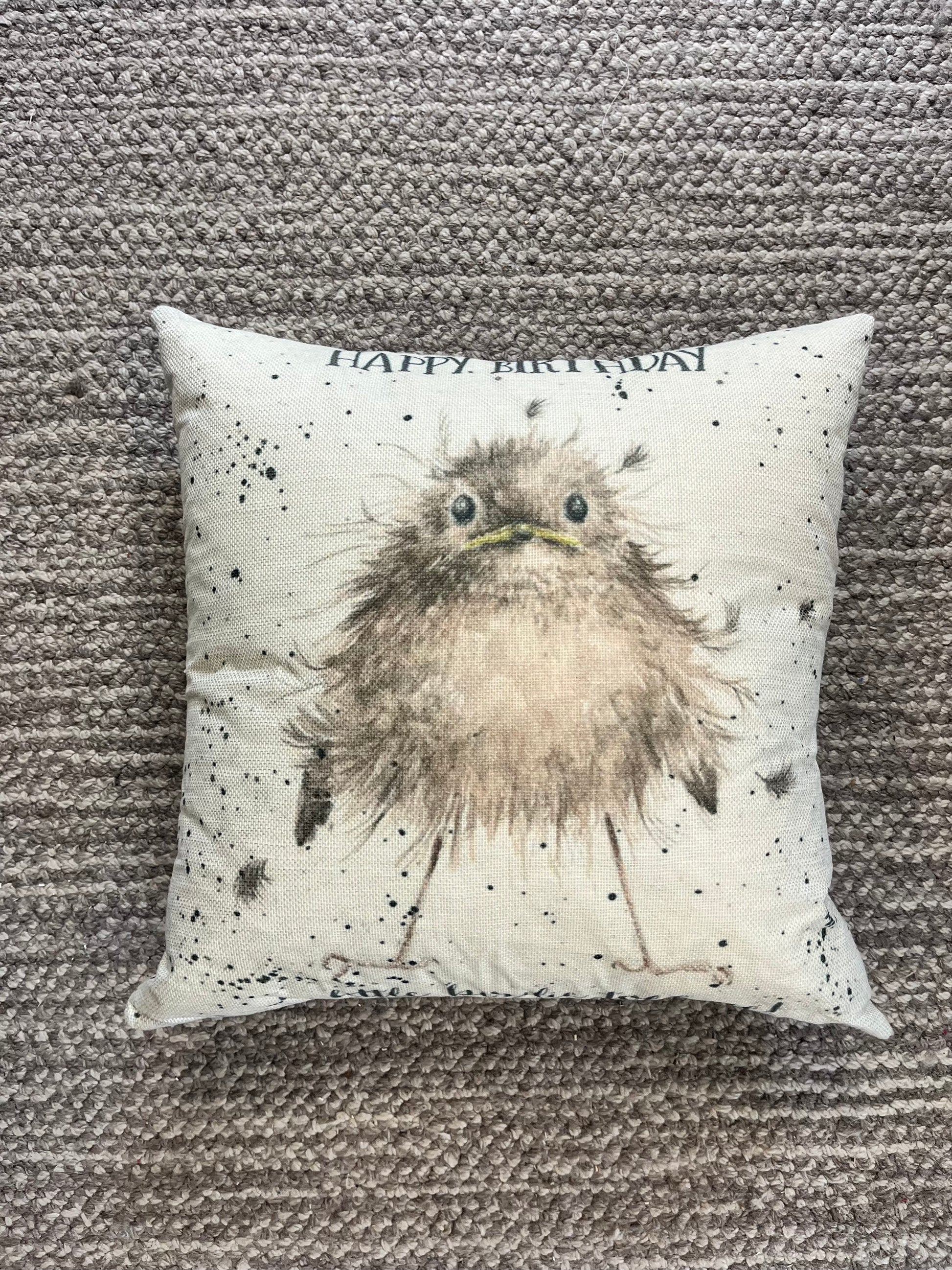 Full Of Character Animal Cushion Cover 17” x 17” With A Plain Cream Back And A Zip Fastening